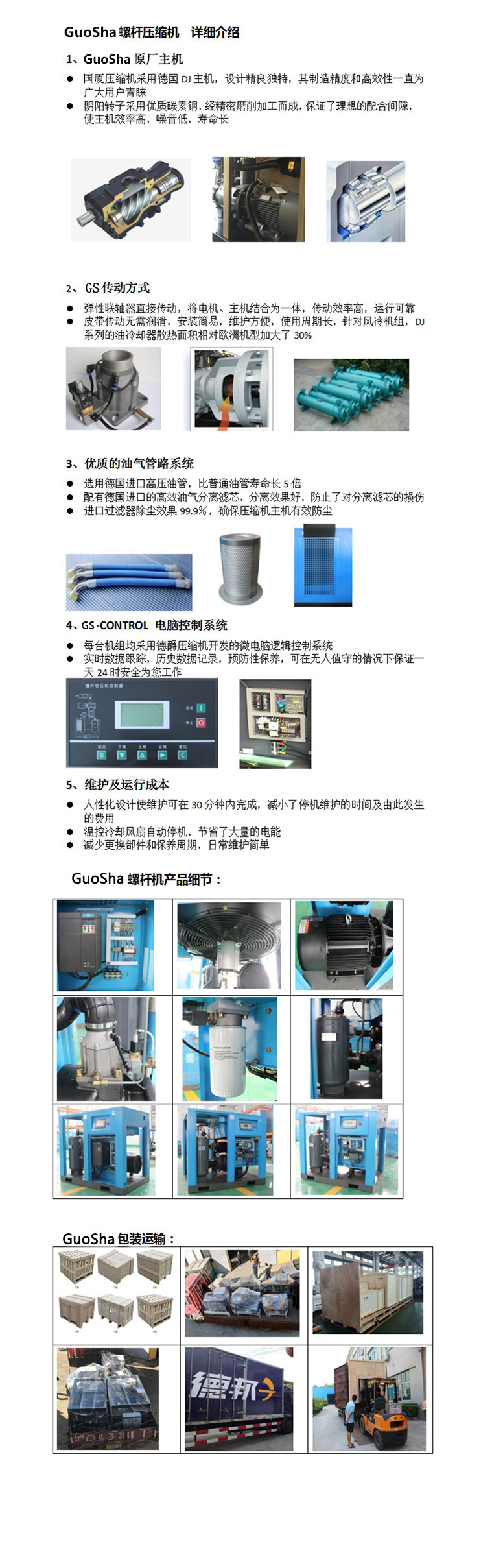 GS螺桿式壓縮機由具有保障的、可靠的及使用壽命高的部件組成,可以長時間連續不間斷工作,零返修率的成績見證了國廈壓縮機的優良品質和安全性能。一體化設計生產技術以及突出的性能價格比,使得國廈壓縮機成為螺桿壓縮機行業的領軍產品和最佳選擇。